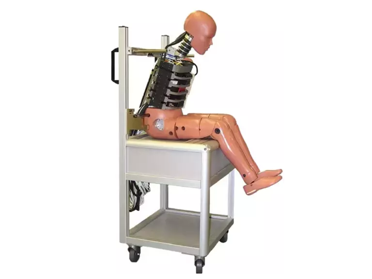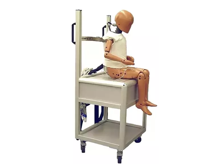 Humanetics offers five models of crash test dummy chairs that are ideal for dummy storage and transportation within the laboratory or testing facility. Our chairs feature solid frameworks, upper shelves enclosed on three sides for storage of dummy documentations and tools, handles adjustable for height, open lower storage shelves, and heavy duty swivel casters with brakes.